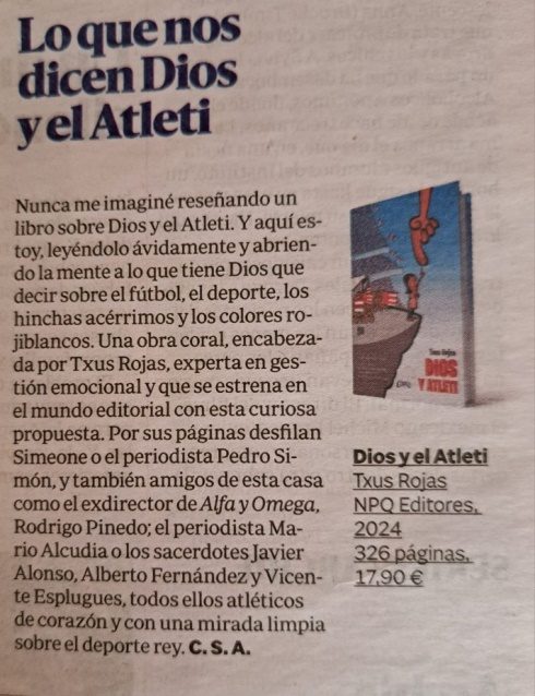 • Artículo en LA TRIBUNA DE ALBACETE, digital y papel. “Ser católico, como ser atlético, genera una comunión” (01/05/25)