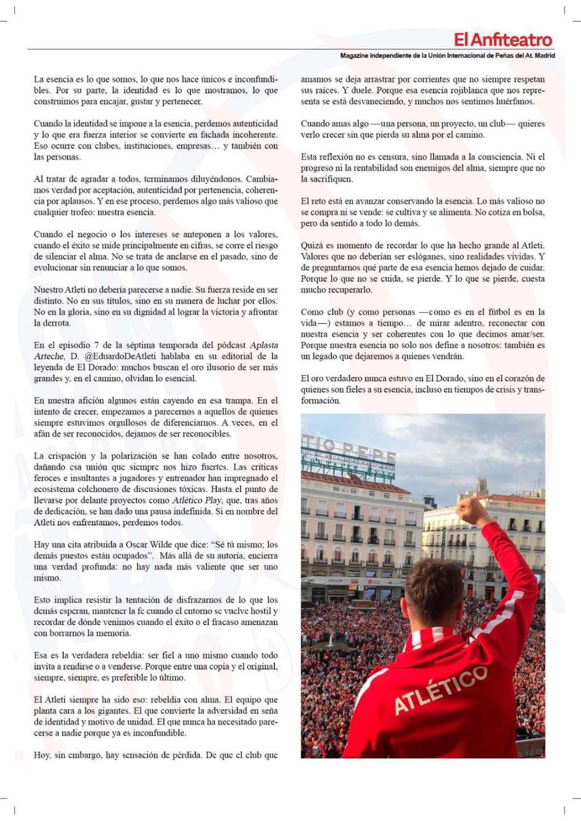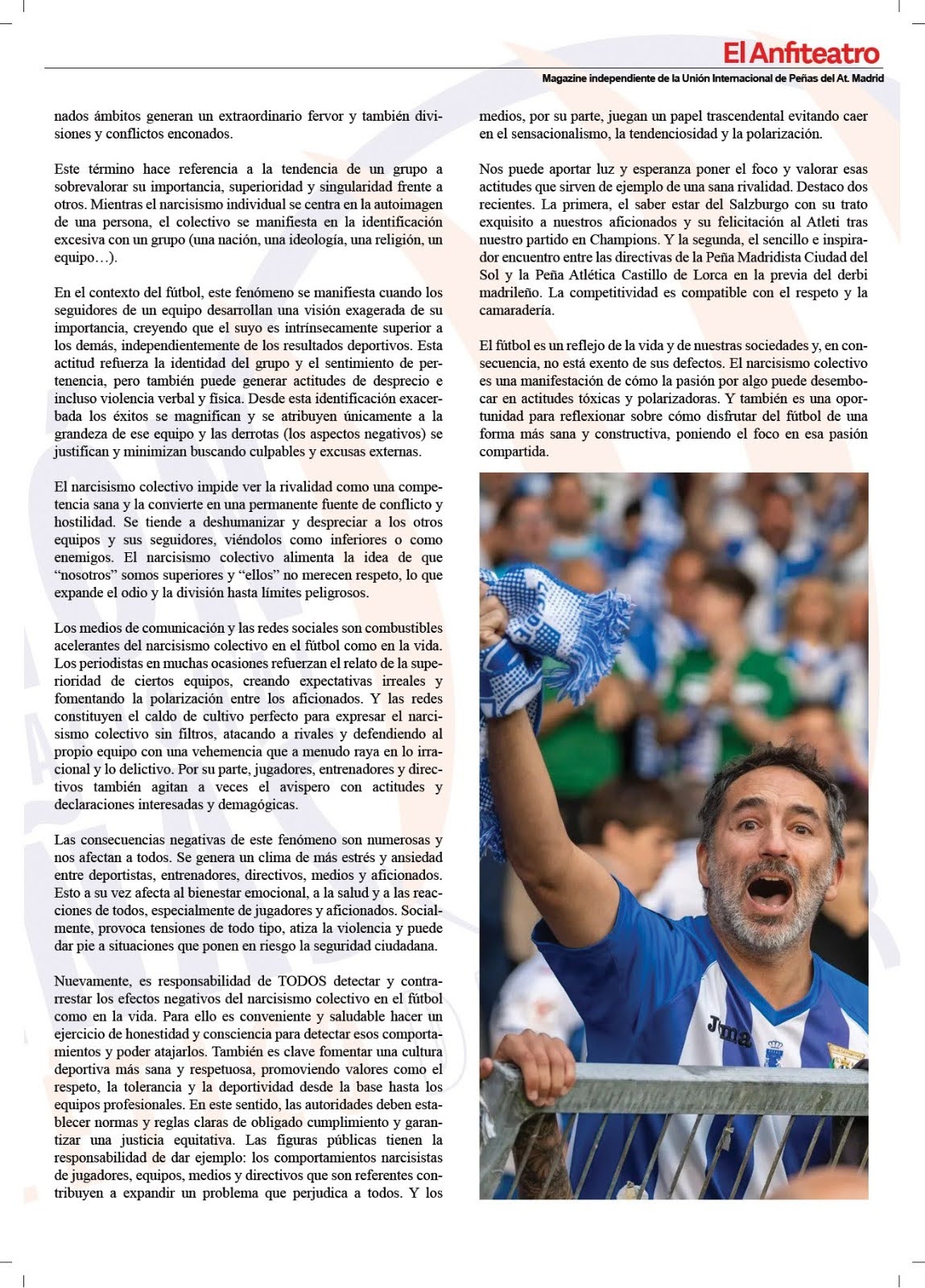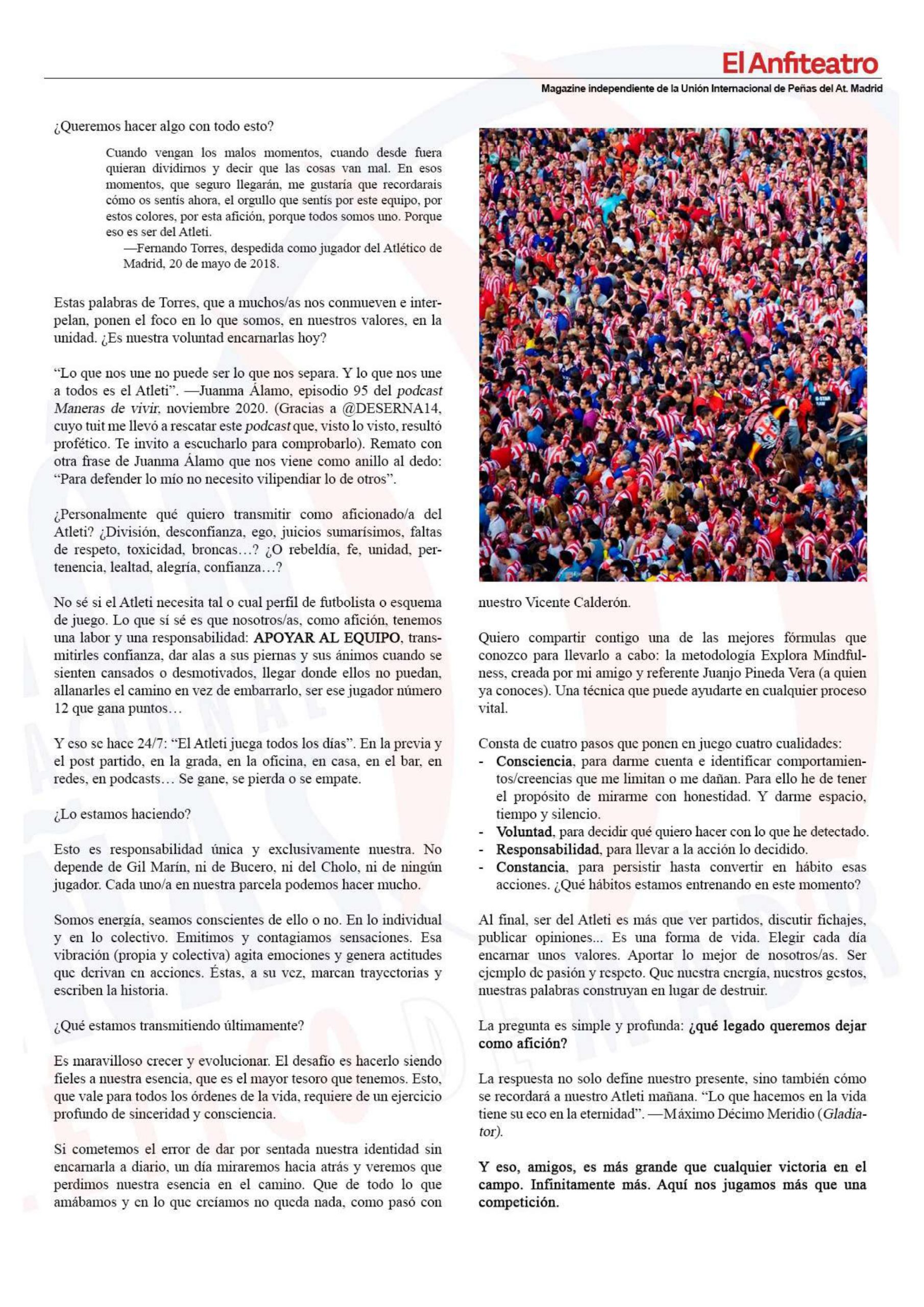 • Artículo “¿Qué legado estamos dejando como afición?”, revista “El Anfiteatro” (Unión Internacional de Peñas del Atlético de Madrid). Agosto 2025