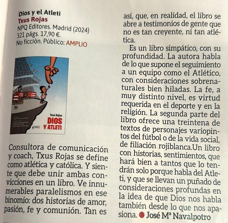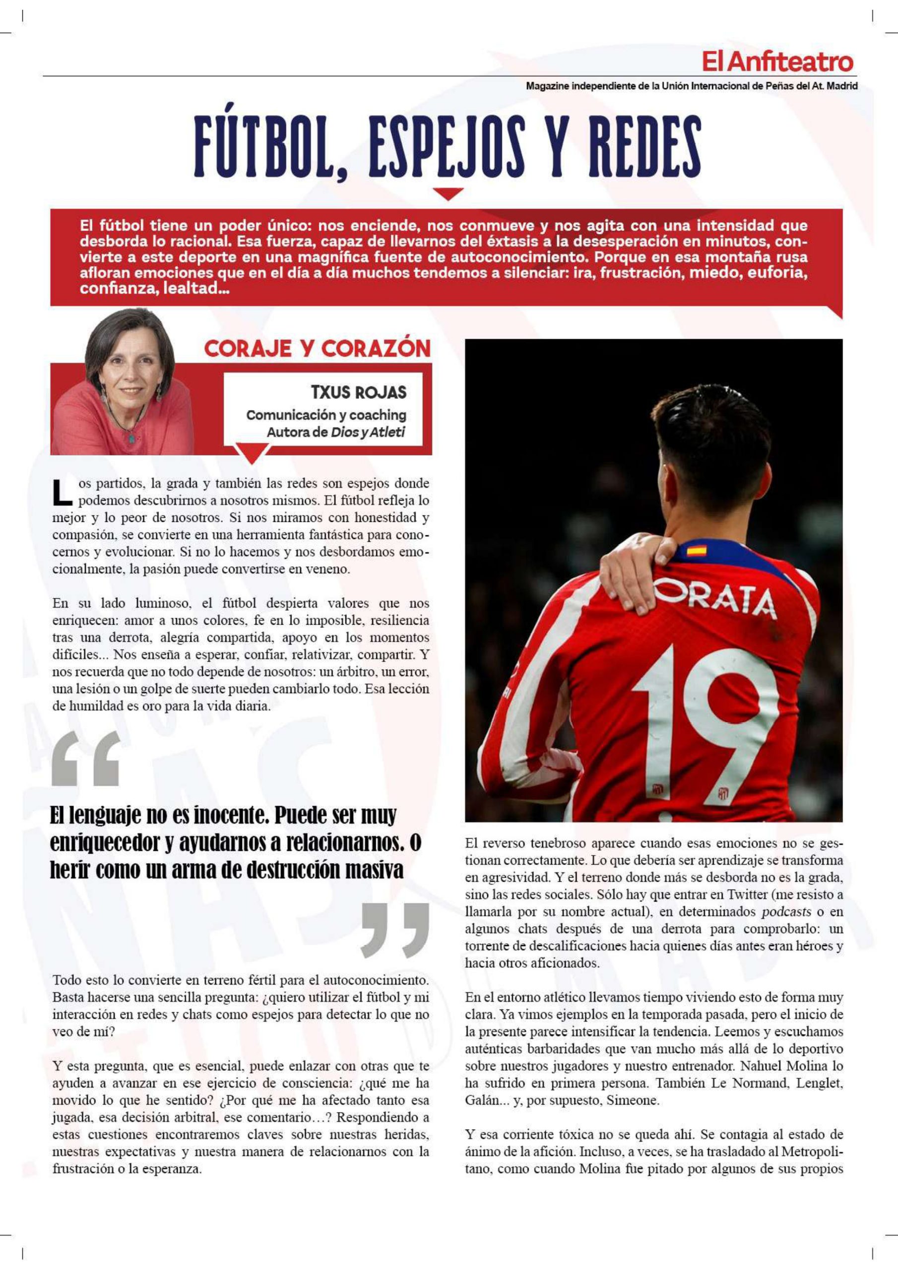 • Artículo “En el fútbol como en la vida”, revista “El Anfiteatro” (Unión Internacional de Peñas del Atlético de Madrid), Febrero 2025