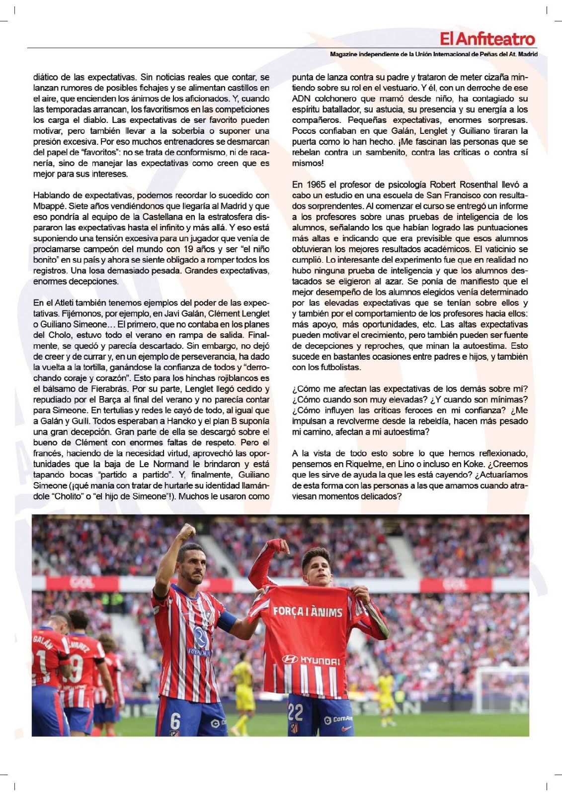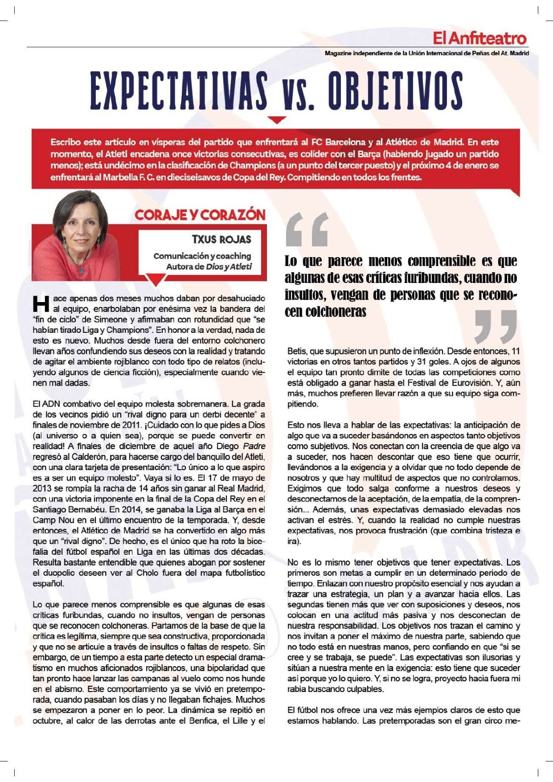 • Artículo “Expectativas vs Objetivos”, revista “El Anfiteatro” (Unión Internacional de Peñas del Atlético de Madrid), Diciembre 2024