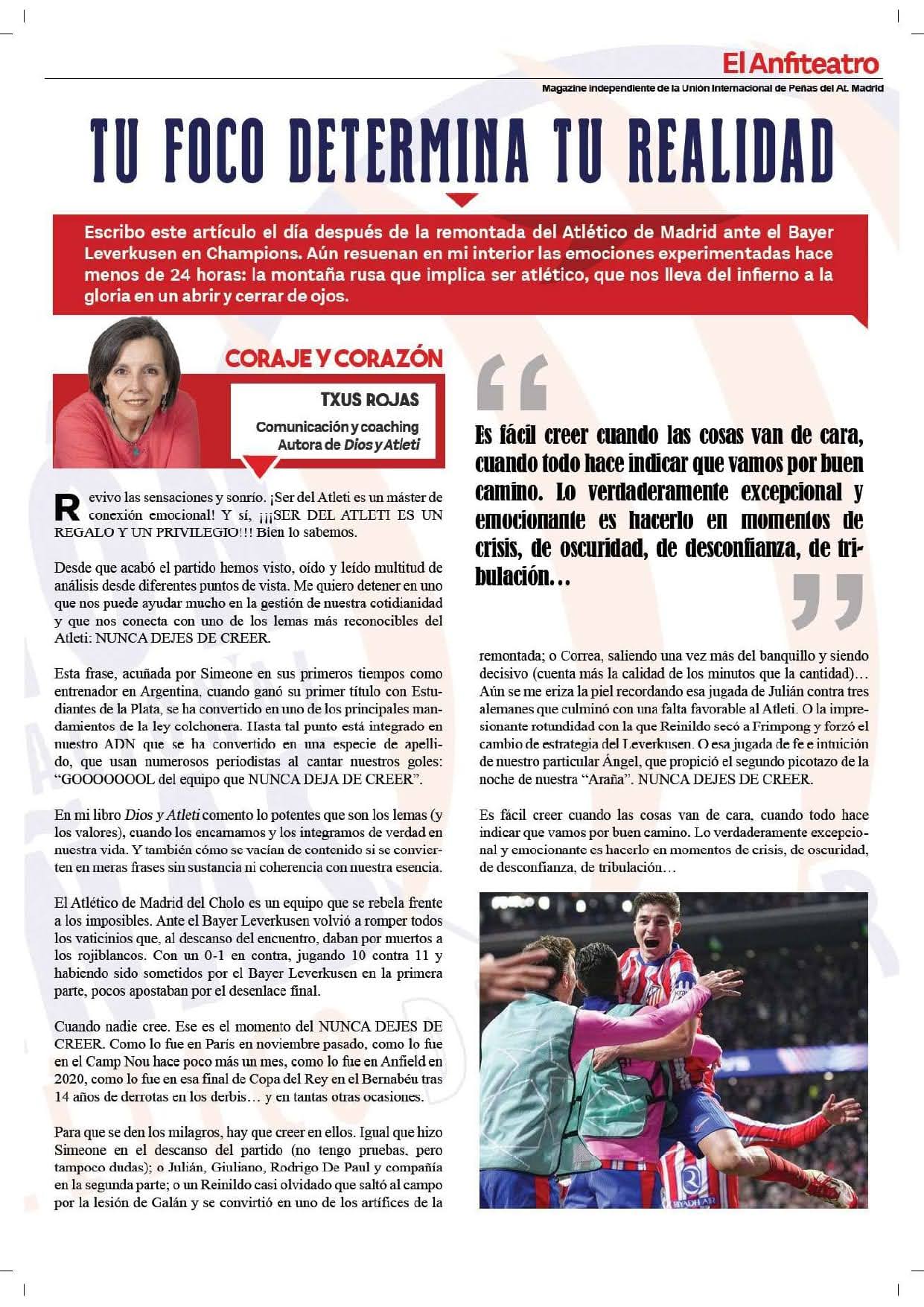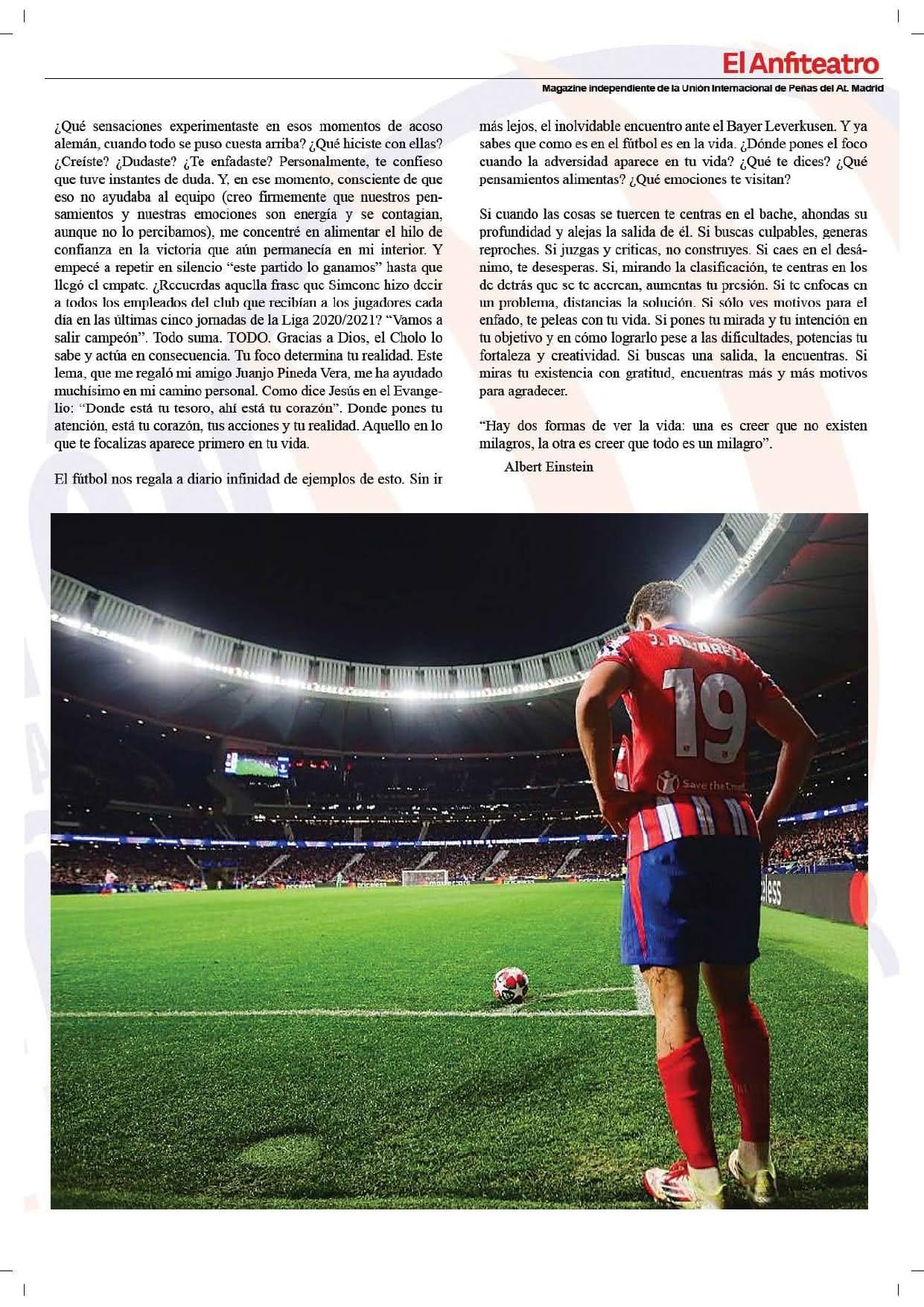 • Artículo “Tu foco determina tu realidad”, revista “El Anfiteatro” (Unión Internacional de Peñas del Atlético de Madrid), Enero 2025