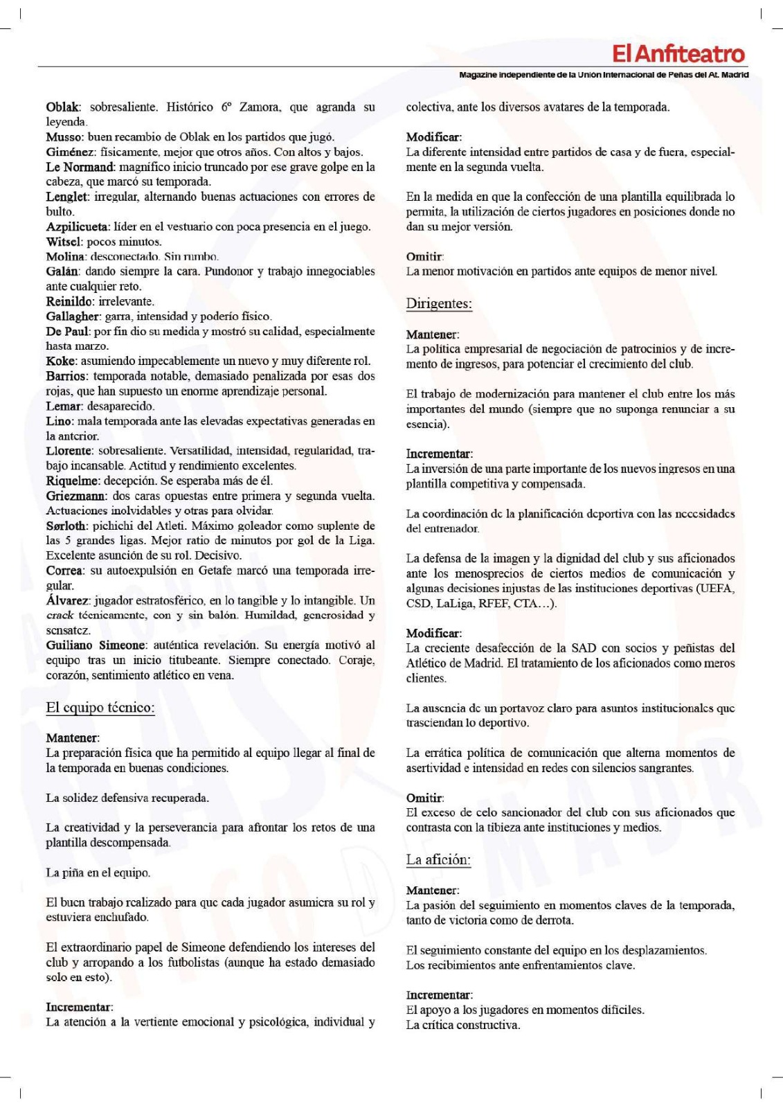 • Artículo “Valorémonos con MIMO”, revista “El Anfiteatro” (Unión Internacional de Peñas del Atlético de Madrid). Mayo 2025